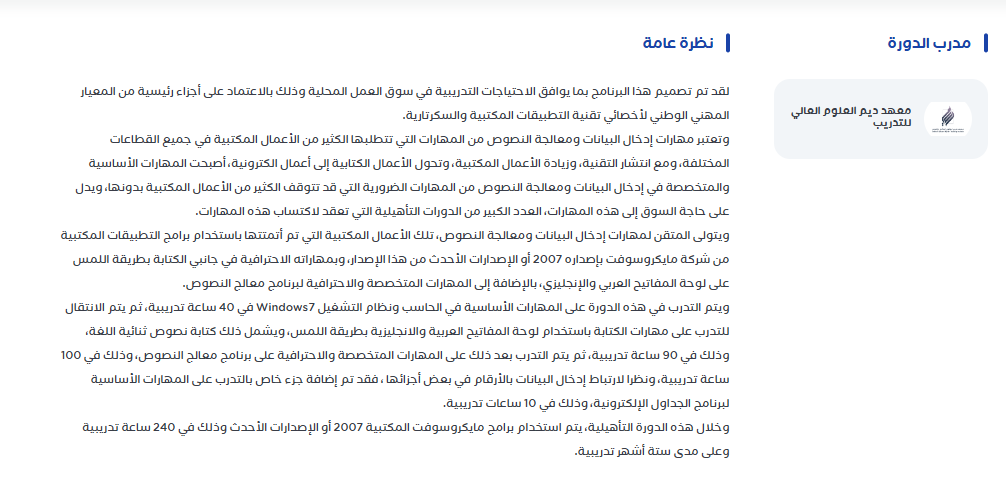 من خلال نظرة عامة تظهر تفاصيل الدورة